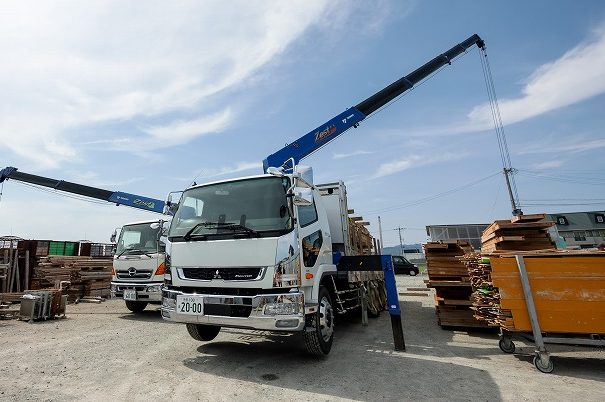 ベニヤ板や浅木など、様々な必要資材を徹底した体制のもと、自社資材置き場にて管理しております。現場毎に必要な量や種類、加工や組み立てが必要な場合などが違うので、あらゆるものに対応できるように資材置き場にて必要な加工作業を行い、スムーズな作業・施工に繋げられるようにしています。